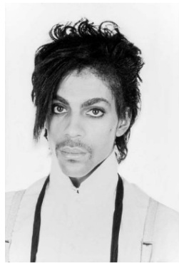 比如,我们观察到,Prince Series系列作品中呈现出的Prince左脸的头发较短,这在Lynn Goldsmith中也能体现。