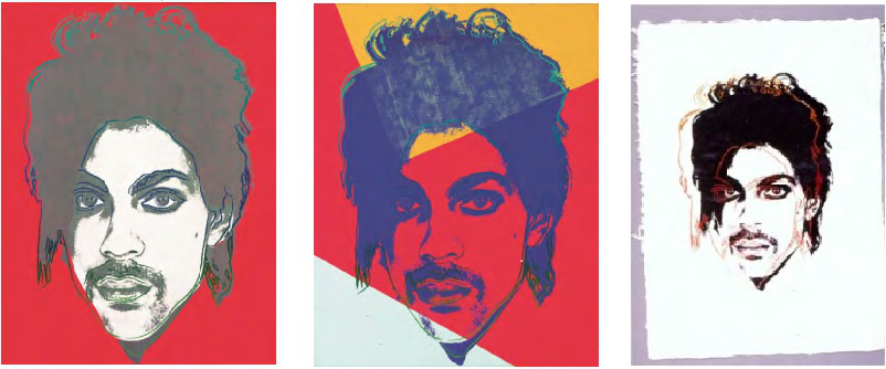 当然,这种广义和狭义的判断不当然否认安迪沃霍尔Prince Series作品的合理使用抗辩。沃霍尔创造这个系列的主要艺术方式是从Lynn Goldsmith的原始照片中去除某些元素,比如颜色深度、对比度,然后增加一些明亮的、非同寻常的颜色。